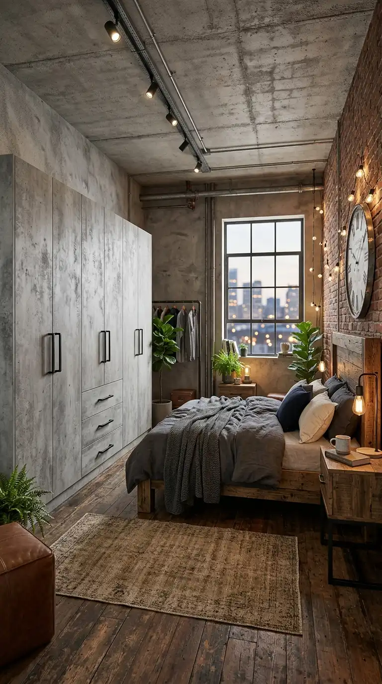 Concrete effect laminate brings an industrial, urban aesthetic to bedroom wardrobes. The cool gray tones and subtle texture mimic raw concrete, adding a sense of modernity and edge. This finish pairs beautifully with black metal accents, warm wood tones, and soft textiles to balance the industrial feel. Use concrete laminate on full-height wardrobes for a bold statement, or as an accent within a mixed-material design.