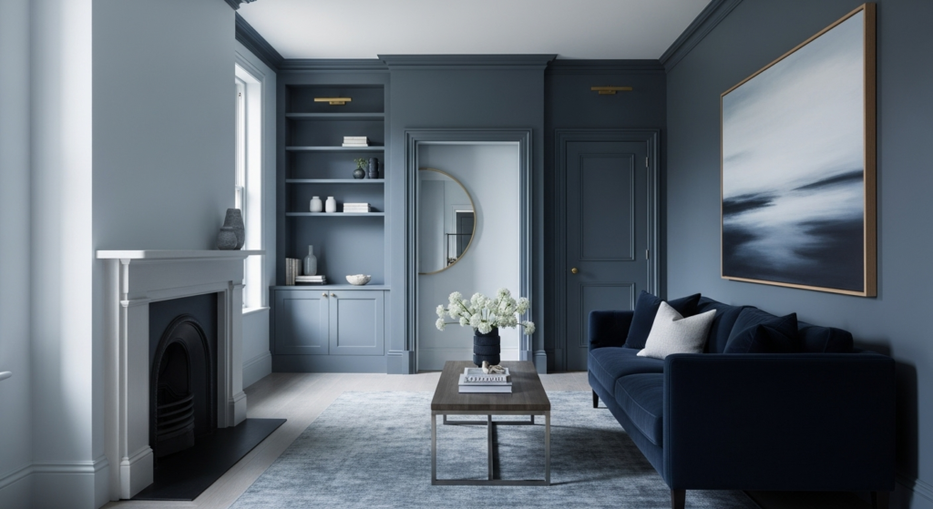 This technique is particularly effective with grays, blues, greens, or warm neutrals. The tonal variation provides just enough contrast to define different planes without fragmenting the space. It’s a designer trick that adds sophistication with minimal risk.