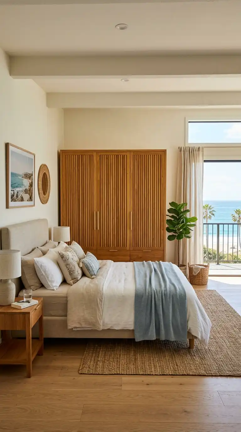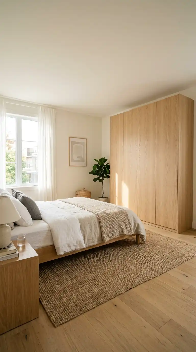 4. Minimalist White Oak Wardrobe with Handleless Design
