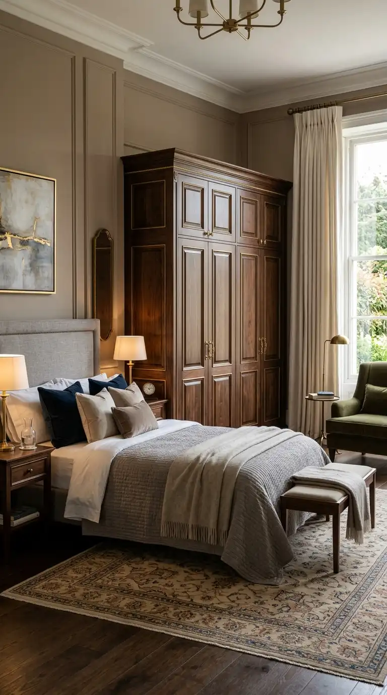 5. Dark Walnut Wardrobe with Brass Accents