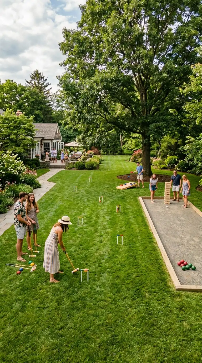 Keep guests entertained with classic lawn games. Set up croquet, bocce ball, badminton, or giant Jenga on a flat area of the lawn. Cornhole and ladder toss are also popular. Lawn games encourage mingling and add a playful, relaxed atmosphere to your garden party. For a children’s party, add a ring toss or bean bag game.