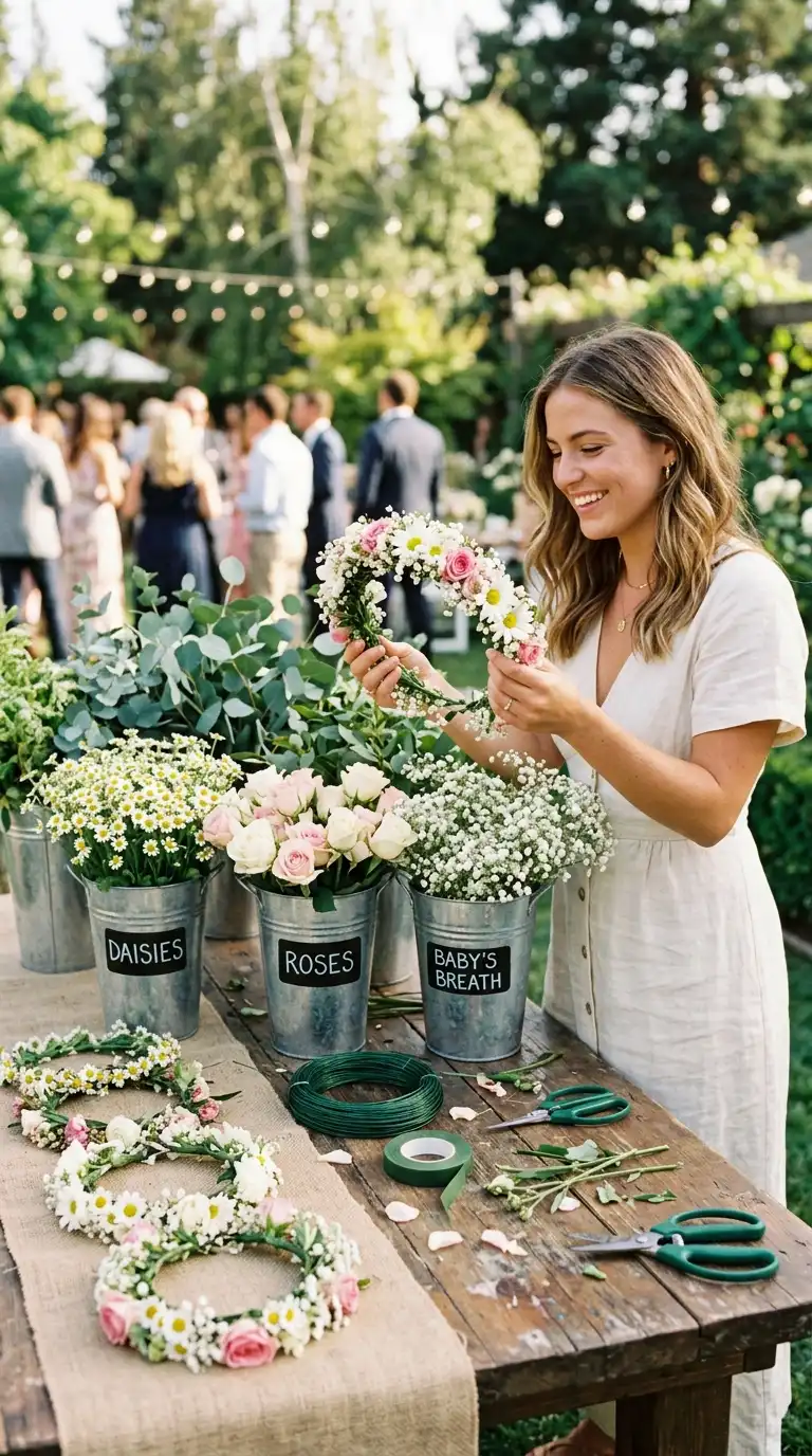 A flower crown station is a fun, interactive activity for guests. Provide fresh flowers (daisies, roses, baby’s breath), floral wire, tape, and scissors. Guests can create their own crowns to wear during the party. This is especially popular for bridal showers, baby showers, and children’s birthdays. The crowns also make great photo props.
