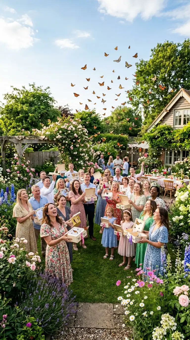 For a truly magical moment, arrange a butterfly or bee release. Order live butterflies (Painted Lady or Monarch) or native bees, and place them in decorative boxes at each place setting or in a central basket. At a designated time, guests release them together. The fluttering insects add wonder and are especially meaningful for memorials, weddings, or spring celebrations.
