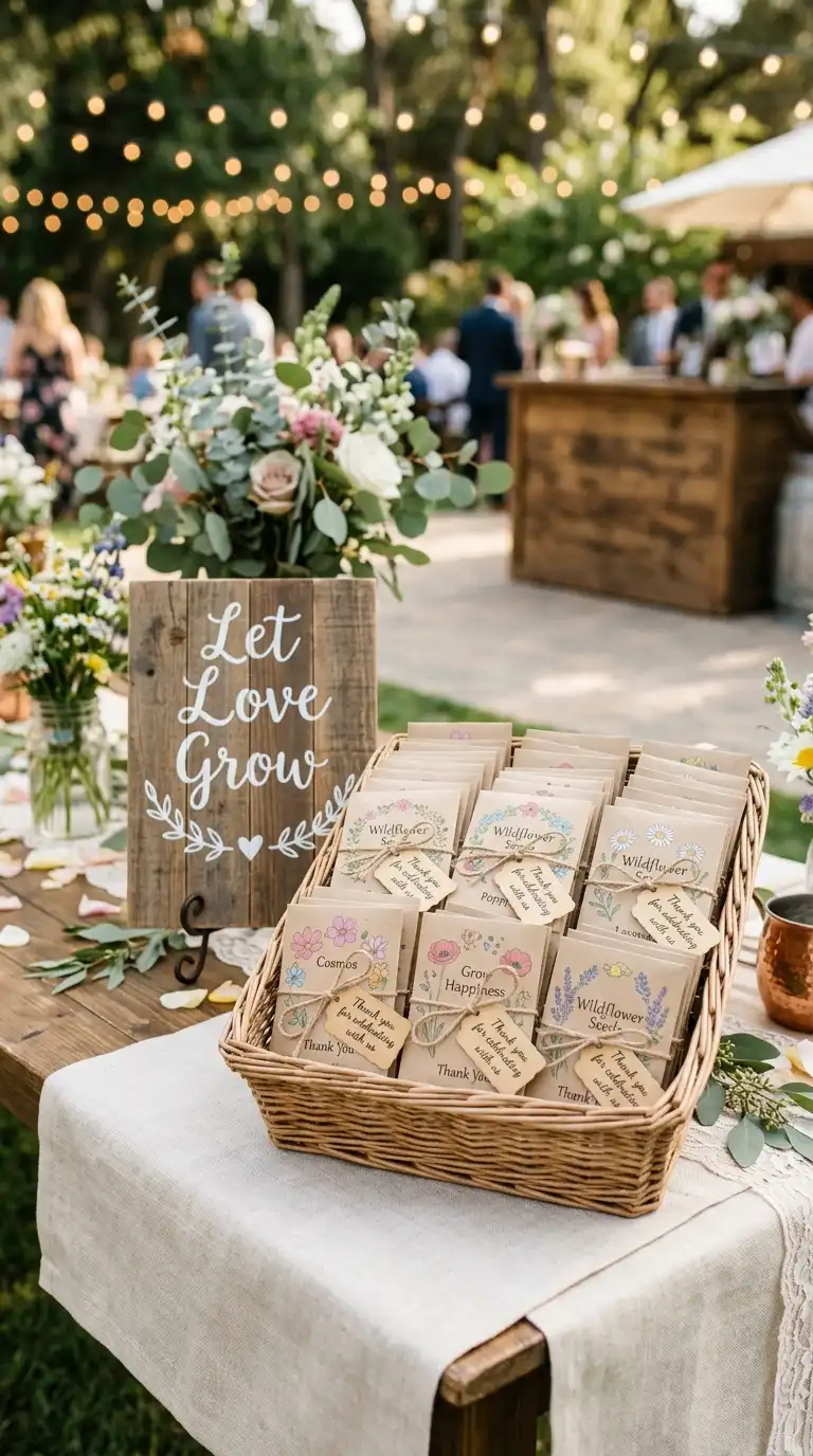 Send guests home with a packet of flower or herb seeds as a favor. Choose seeds that match your garden’s theme—sunflowers, zinnias, lavender, basil, or mint. Place the packets in a small basket at each place setting, or arrange them on a table with a sign reading “Let Love Grow.” Seed favors are affordable, eco-friendly, and a beautiful reminder of the day.
