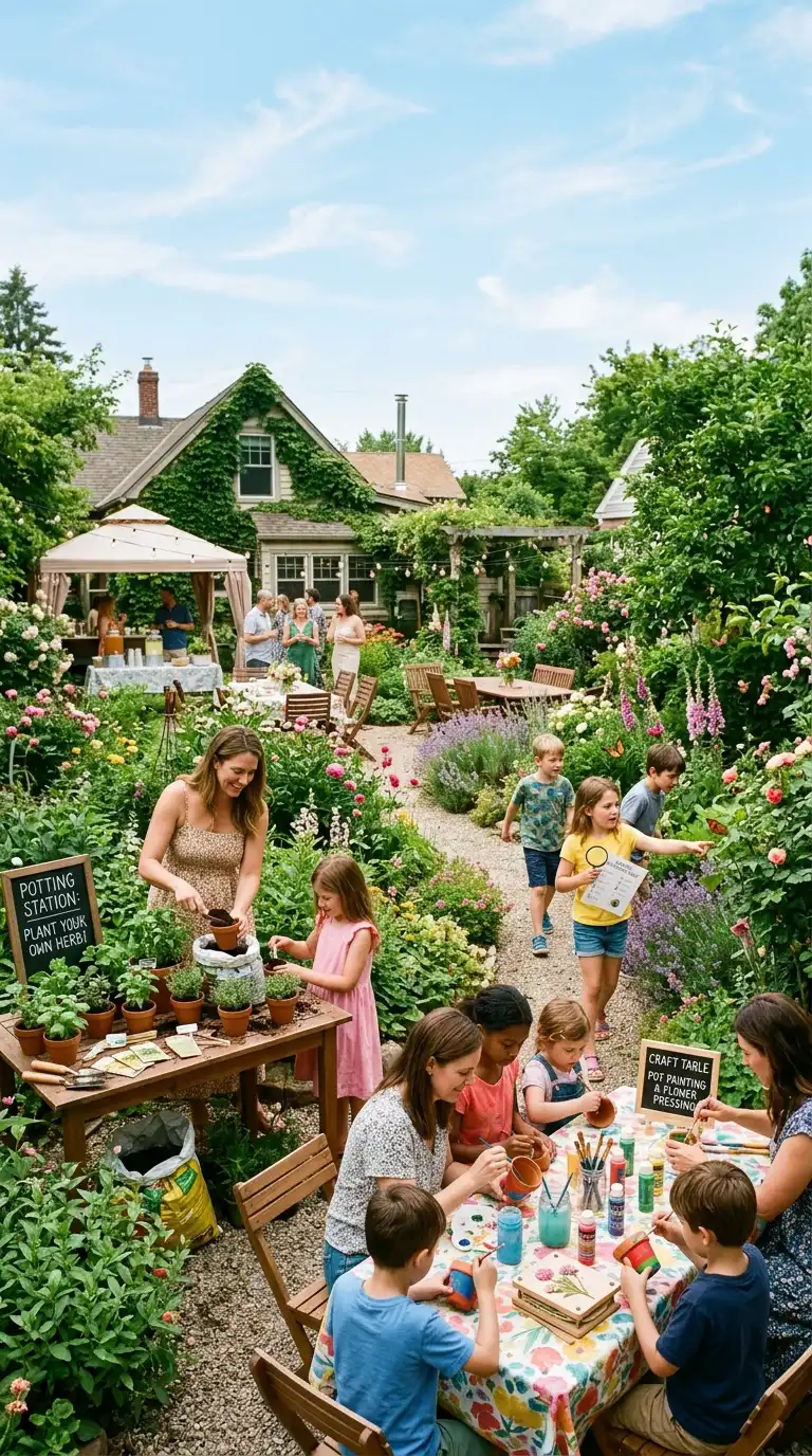Incorporate garden-themed activities for guests of all ages. Set up a potting station where guests can plant a small herb or flower to take home. Offer garden-themed crafts like painting terracotta pots or making pressed flower bookmarks. For children, set up a scavenger hunt for butterflies, ladybugs, and specific flowers. Activities keep guests engaged and add to the garden party experience.