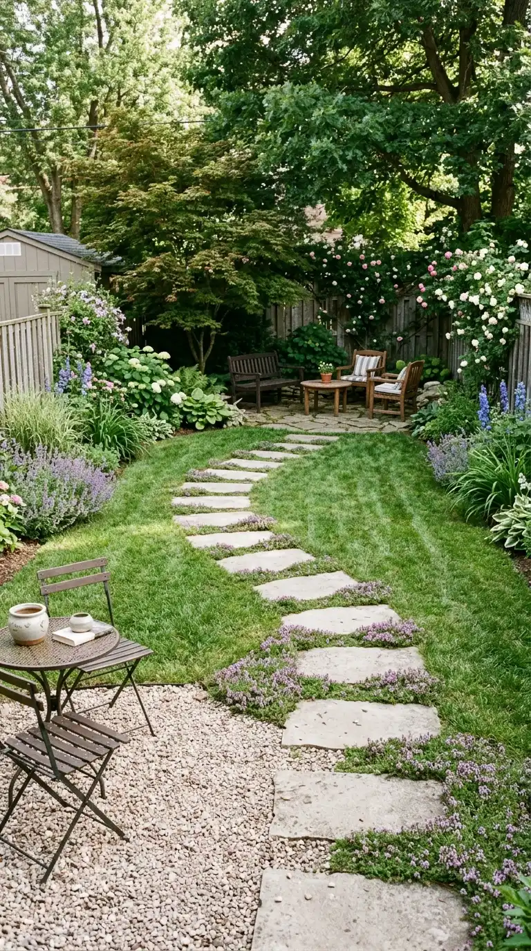 A pathway adds structure and charm to your backyard without the cost of full paving. Use affordable materials like concrete stepping stones, reclaimed bricks, or even slices of tree trunk. Space them strategically to guide movement through the garden. Fill between the stones with gravel, mulch, or ground cover plants for a finished look.