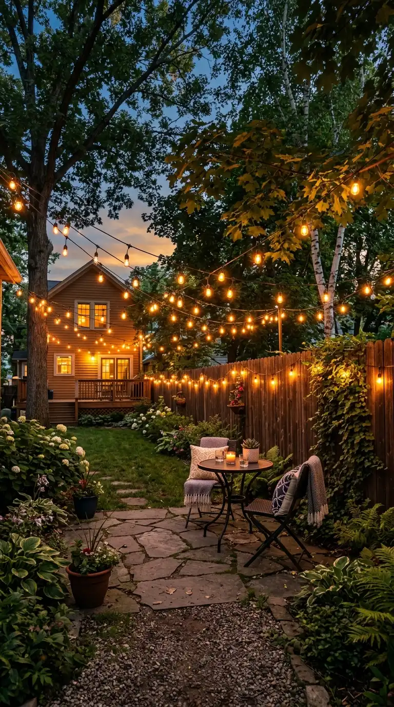String lights are an affordable way to add instant ambiance to your backyard. Hang them between trees, along fences, or across a patio to create a warm, inviting atmosphere for evening gatherings. Choose warm-toned bulbs for a cozy glow. String lights are inexpensive, easy to install, and can be used season after season.