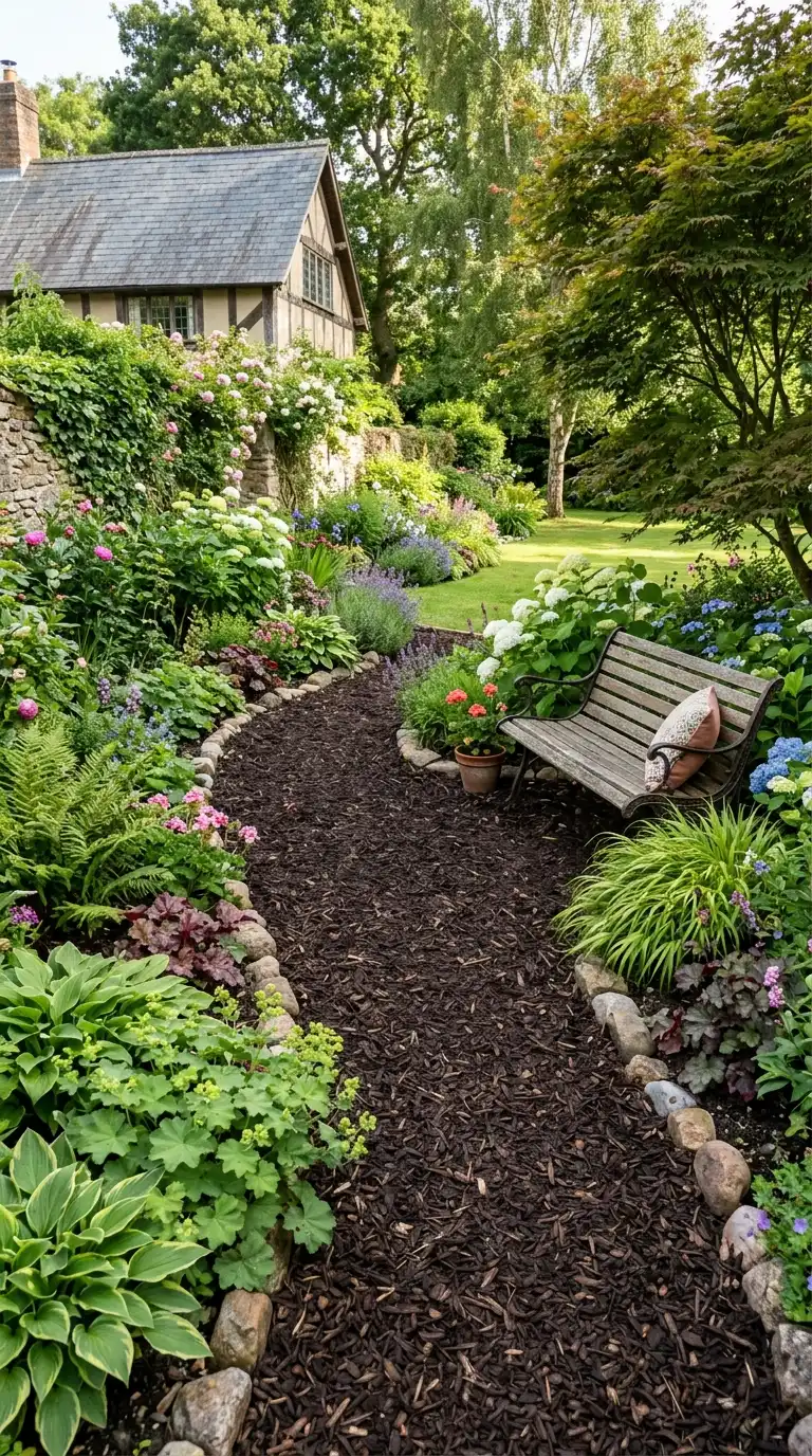 Mulch is an inexpensive material that can transform garden beds and create informal pathways. Use shredded bark, wood chips, or pine straw to cover bare soil, suppress weeds, and retain moisture. Create mulch pathways to define different zones in your yard. Mulch is affordable, readily available, and gives the garden a clean, cohesive look.