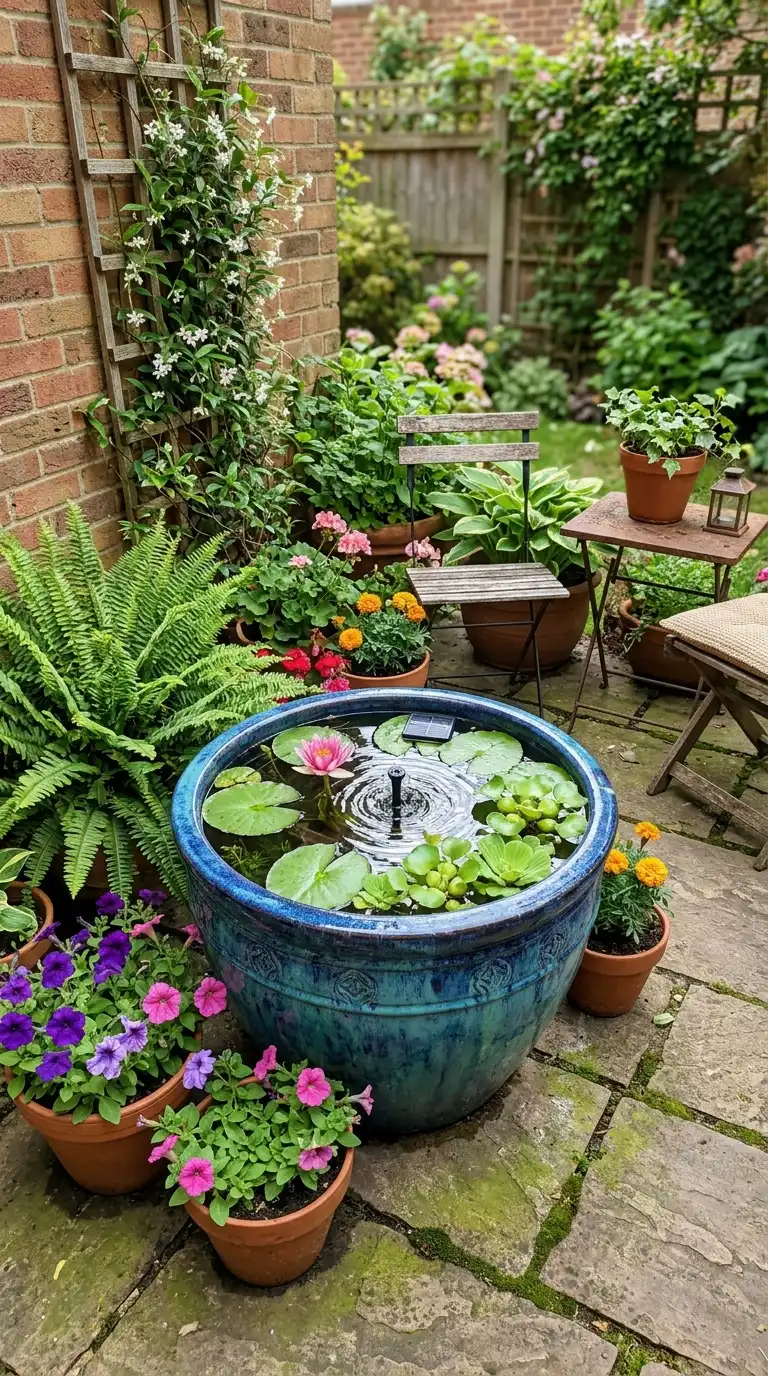 A container pond is the simplest and most affordable DIY pond option, perfect for small patios, balconies, or tiny backyards. Use a large ceramic pot, half-barrel, galvanized tub, or even an old bathtub. Ensure the container is watertight or add a liner. Add aquatic plants like water lilies, lotus, or floating hyacinths, and consider a small solar fountain for movement and sound. Container ponds are easy to maintain and can be moved if needed.