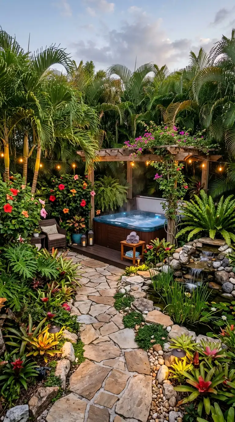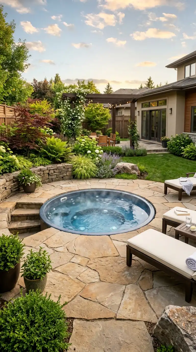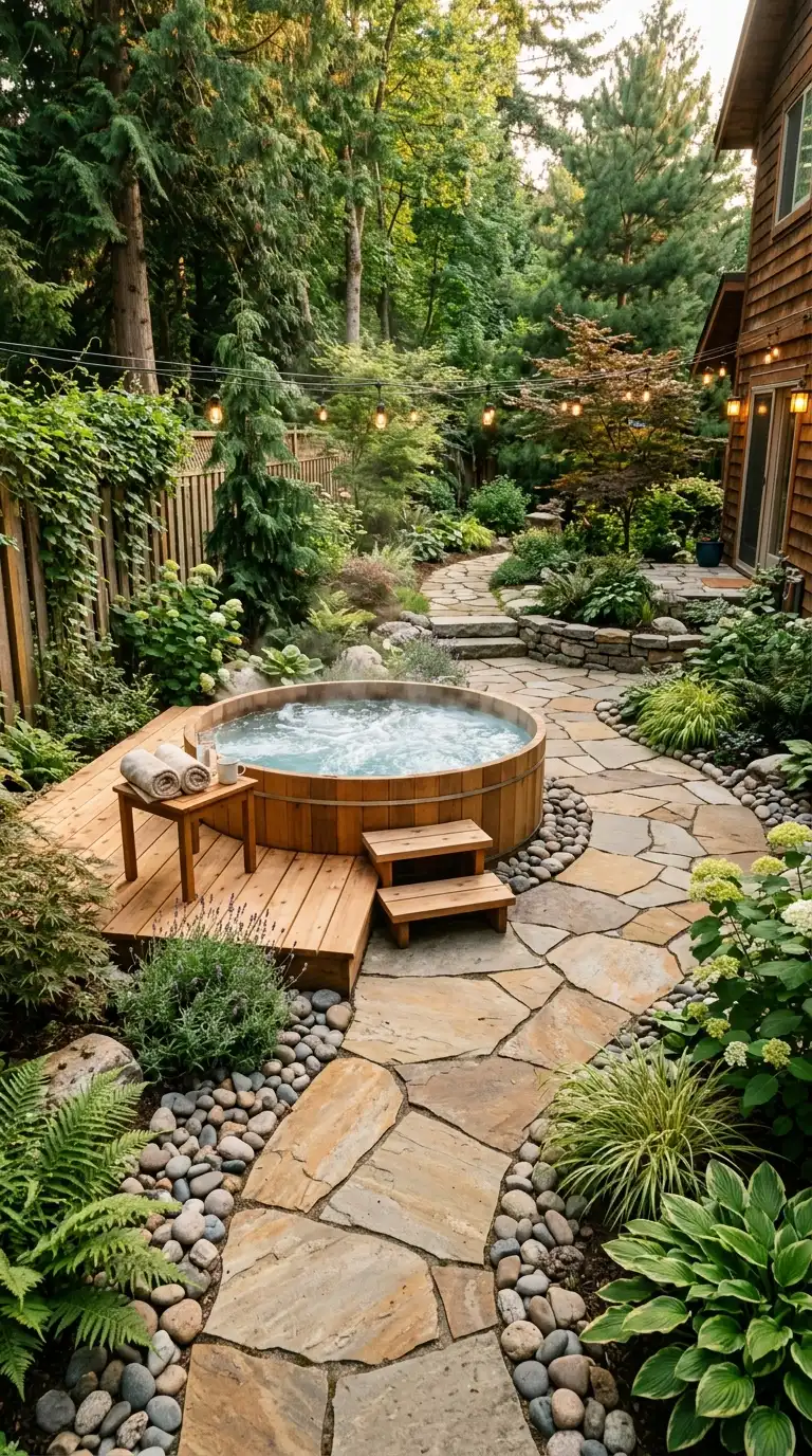 Transform your hot tub area into a lush garden retreat by surrounding it with tropical plants, ferns, flowering shrubs, and ornamental grasses. Use plantings to soften hardscaping, provide privacy, and create a sense of enclosure. Choose plants that thrive in your climate and add fragrance—lavender, jasmine, or gardenia—for an additional sensory layer.