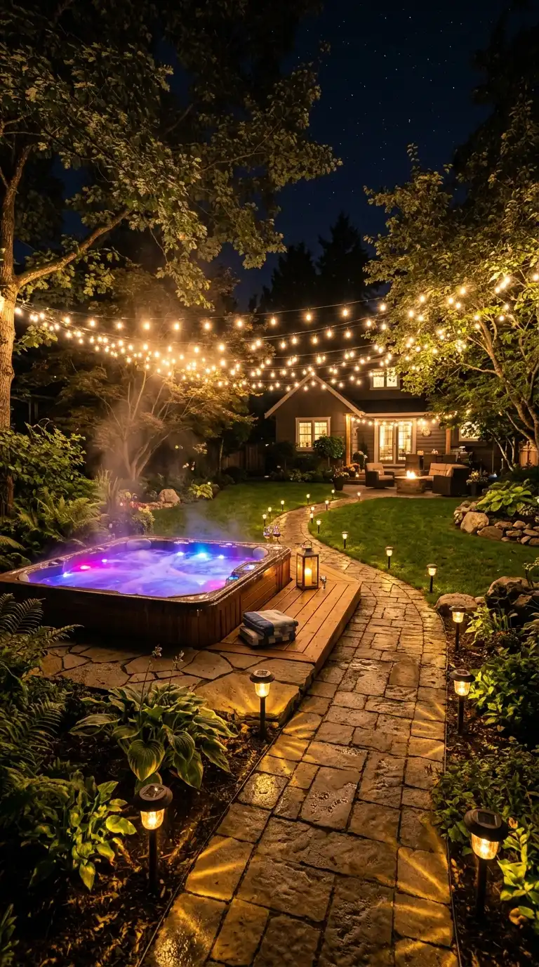 Lighting transforms your hot tub area into a magical evening retreat. Use underwater LED lights to illuminate the tub itself, creating a beautiful glow. Add path lights to guide guests to the area, and string lights or lanterns overhead for ambient illumination. Dimmable lighting allows you to adjust the mood for relaxation or entertaining.