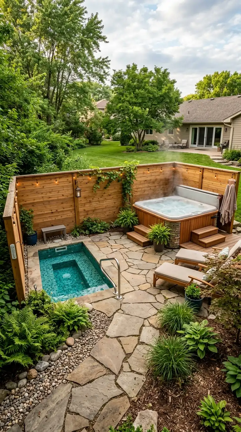 For the ultimate spa experience, add a cold plunge or small cooling pool adjacent to your hot tub. Alternating between hot and cold water is invigorating and has therapeutic benefits. A small plunge pool or a simple basin with chilled water can be integrated into the design, creating a complete hydrotherapy experience.