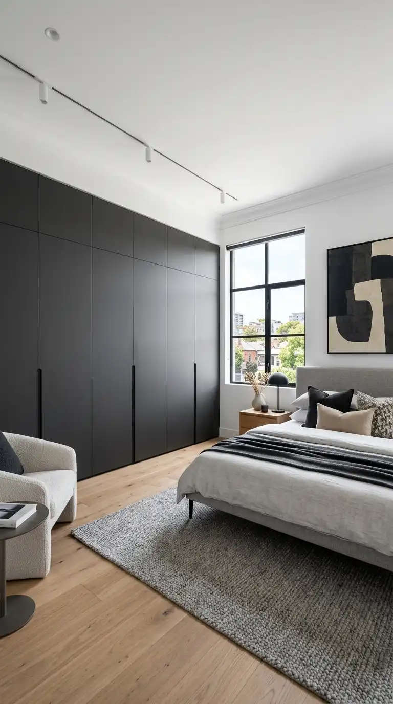 The handleless floor-to-ceiling wardrobe is a hallmark of contemporary design. The seamless, uninterrupted surface creates a clean, architectural look that blends with the walls. Push-to-open mechanisms or integrated grooves allow doors to open without visible hardware. The floor-to-ceiling height maximizes vertical storage and draws the eye upward, making the room feel taller and more spacious. Choose matte finishes in neutral tones for a sophisticated, understated aesthetic.