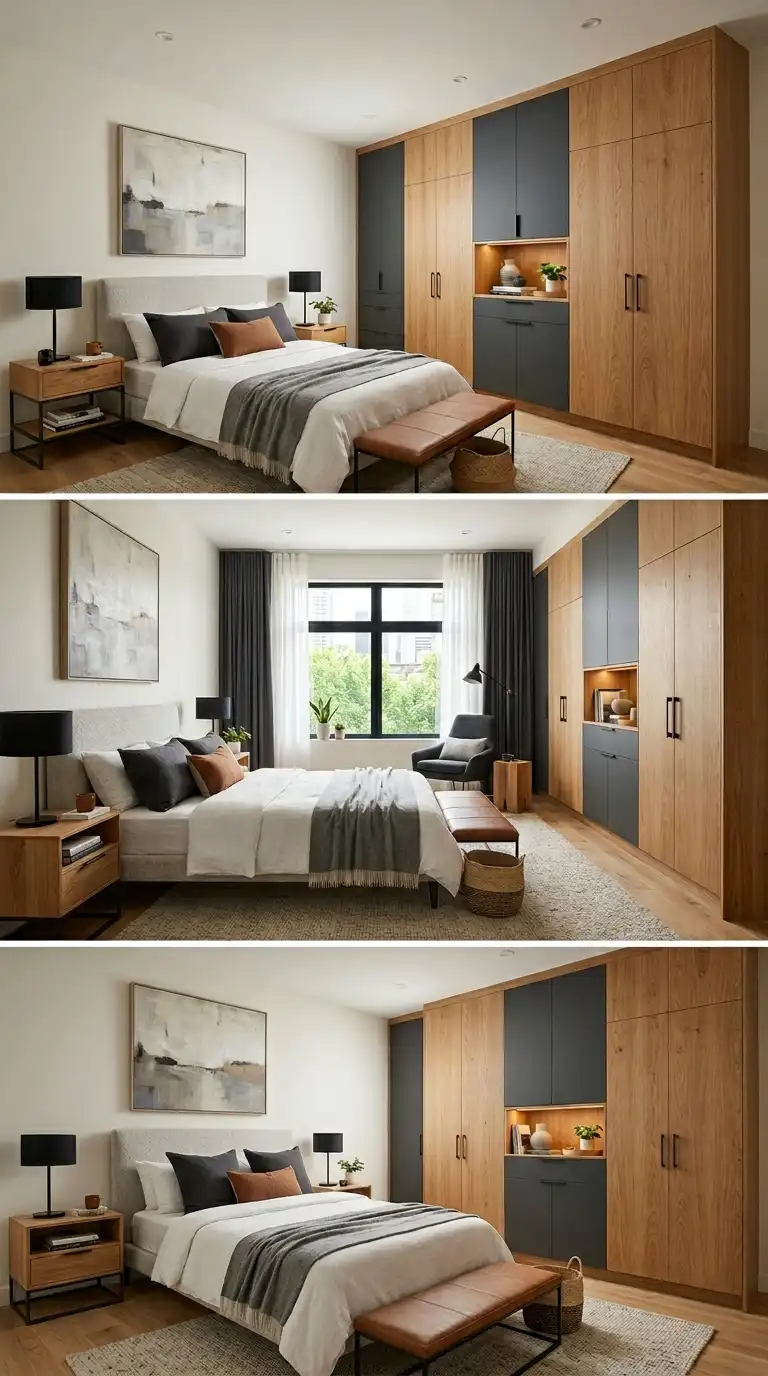 For environmentally conscious design, sustainable wardrobes crafted from bamboo, reclaimed wood, or FSC-certified timber are increasingly popular. Low-VOC finishes and non-toxic adhesives contribute to a healthier indoor environment. The natural beauty of these materials adds warmth and authenticity to modern bedrooms. Combine with energy-efficient LED lighting and natural textures for a cohesive, eco-friendly aesthetic.