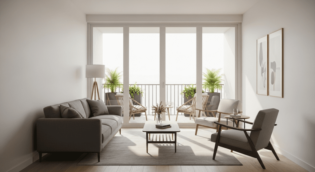 Visual Connection: Even when balcony doors are closed, maintain visual connection to the outdoors. Avoid blocking views with tall furniture, and position seating where occupants can see outside.