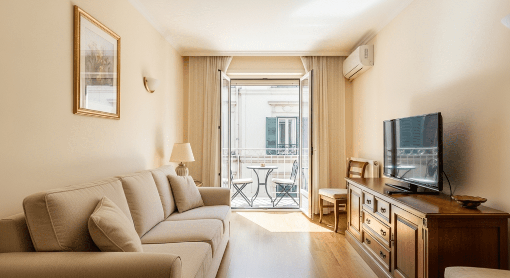 Light Control Matters: Balcony doors flood rooms with light, which is wonderful but can create glare on TV screens or fade furniture. Plan for adjustable window treatments—sheer curtains, blinds, or shades—that allow light control without permanently blocking your outdoor connection.