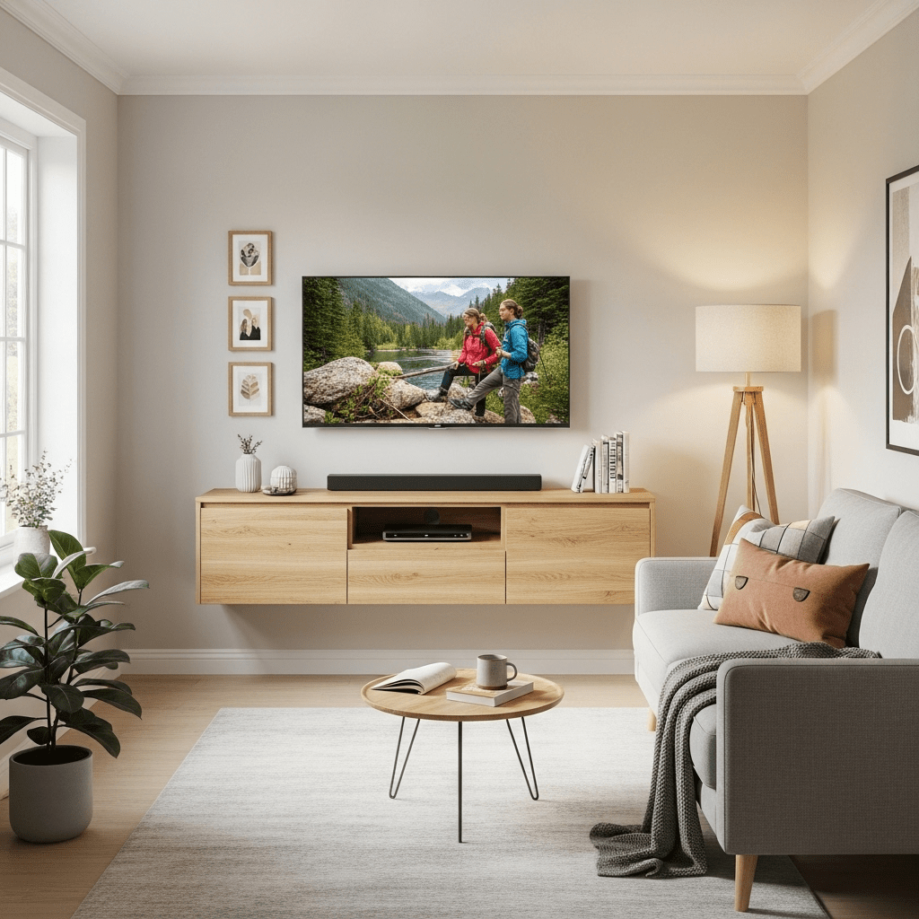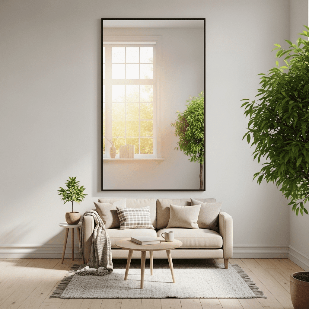 Hang a large, oversized mirror opposite your main window. This reflects the outdoor view and doubles the amount of natural light, making the room feel twice as deep.