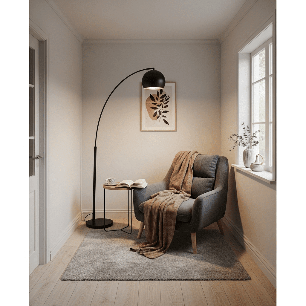 Dark corners shrink a room. Place a tall, slim floor lamp in a far corner to illuminate the entire footprint, ensuring every inch of the room is visible and welcoming.
