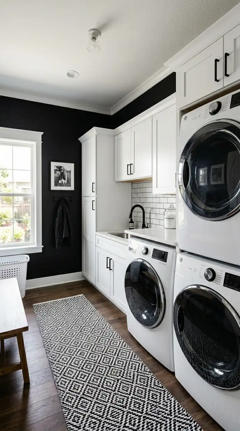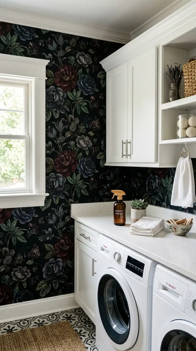 A moody laundry room embraces dark colors, rich textures, and dramatic accents to create a space that feels cozy, sophisticated, and far from ordinary. Whether you paint the walls navy or charcoal, use dark wood cabinets, add an emerald tile backsplash, or simply swap your hardware for matte black, there are many ways to achieve a moody aesthetic. Balance the darkness with good lighting, white or light trim, and moments of warmth through brass or wood. With these moody laundry room ideas, you can transform a utilitarian space into a dramatic sanctuary you actually enjoy spending time in.