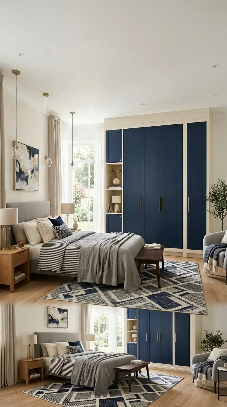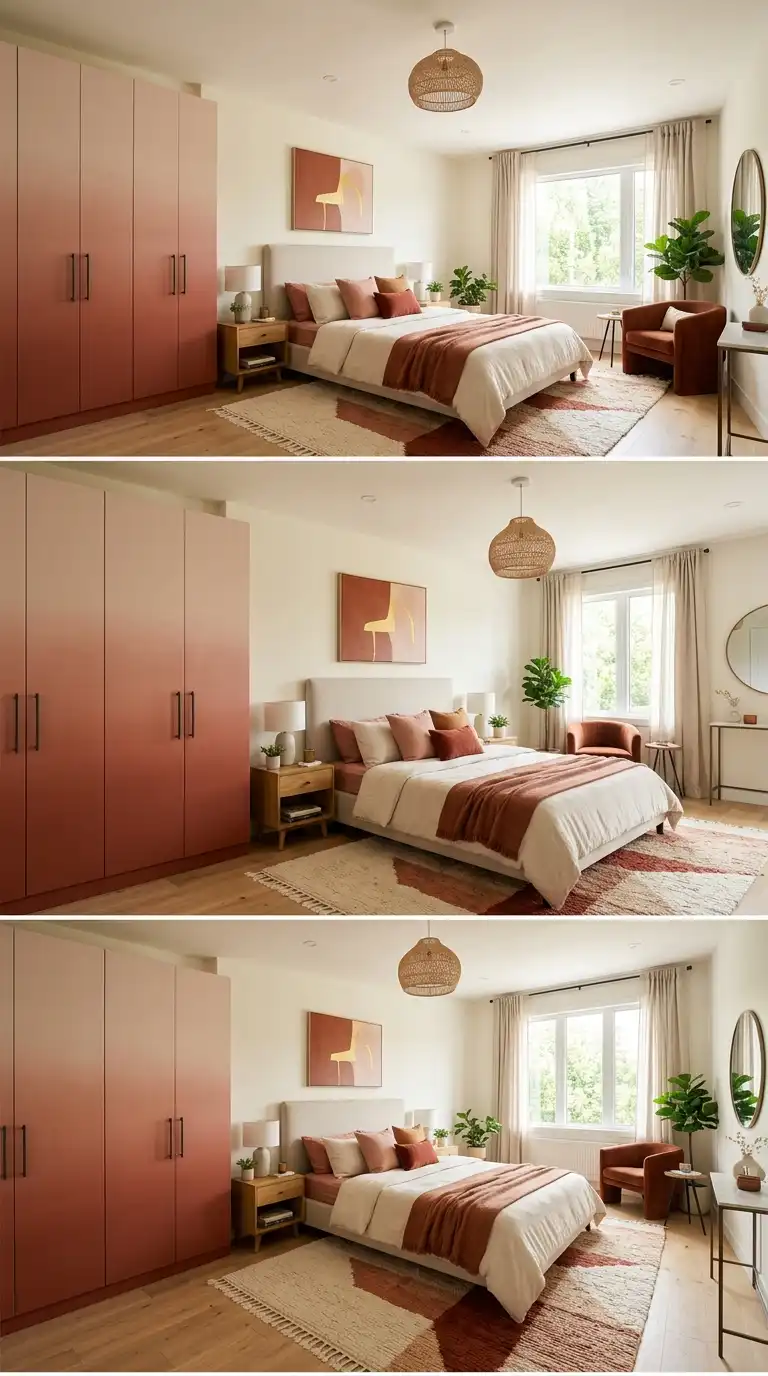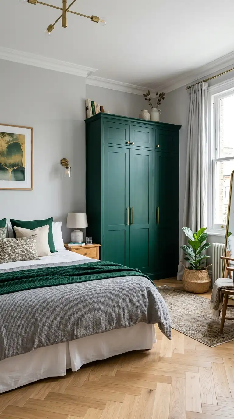 Make your wardrobe a focal point by painting it in a bold, saturated color. Deep navy, emerald green, charcoal, or terracotta can transform a plain wardrobe into a striking design feature. Use a matte finish for a sophisticated look, or high-gloss for added drama.