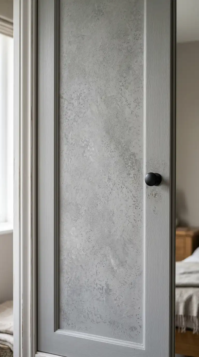 Add texture to painted wardrobe doors using techniques like sponging, rag rolling, or using textured paint additives. A subtle textured finish adds visual interest without the need for pattern or color contrast. Use a matte or eggshell finish to enhance the texture.