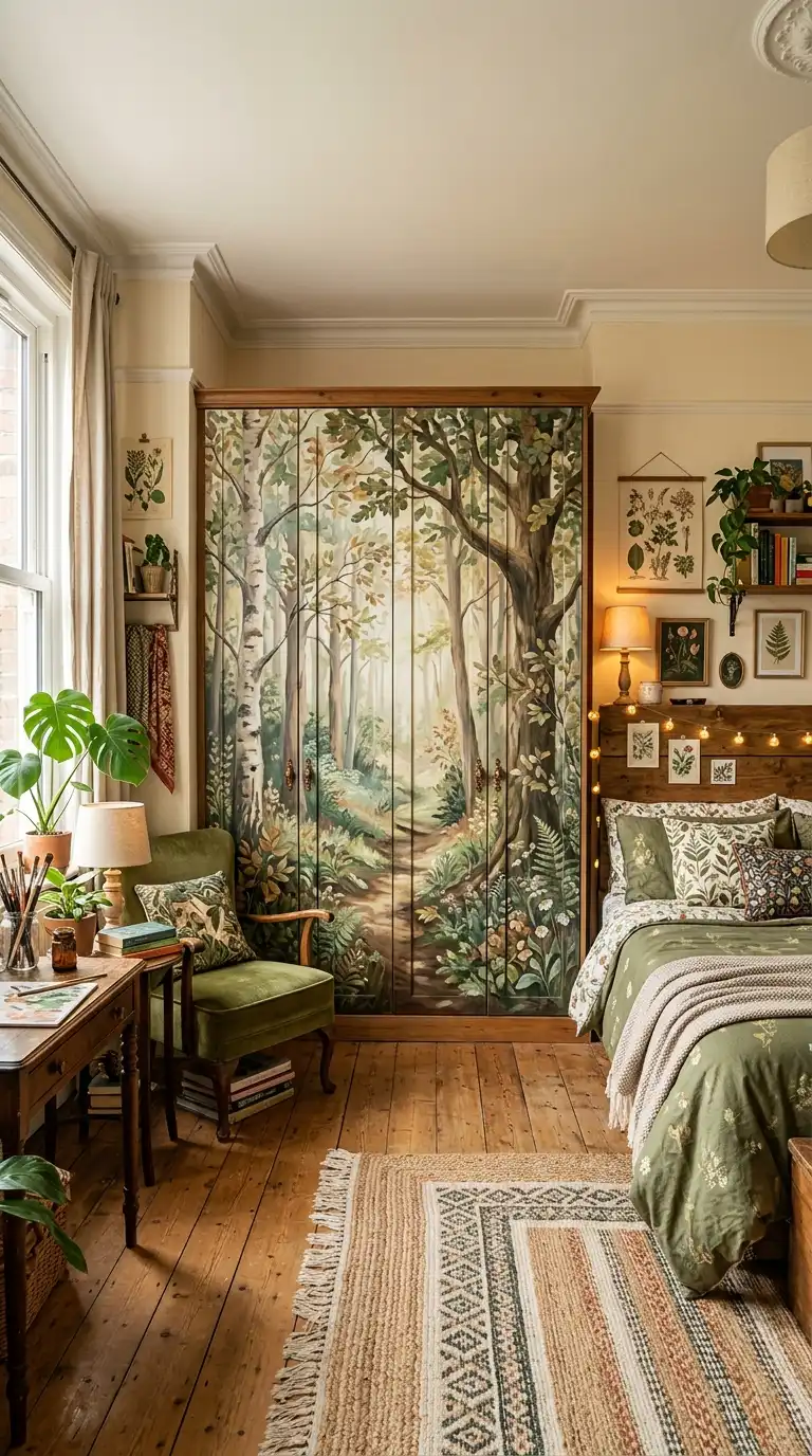 Transform wardrobe doors into a work of art with a hand-painted mural. Botanical motifs, abstract designs, or landscape scenes can turn a plain wardrobe into a unique statement piece. Use acrylic paints and seal with a clear topcoat for durability.