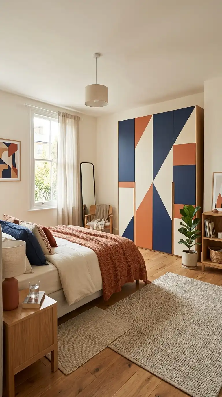 Use color blocking on individual doors or sections of your wardrobe. Paint each door a different color within a cohesive palette, or use geometric shapes in contrasting colors. This modern approach adds personality and visual interest.