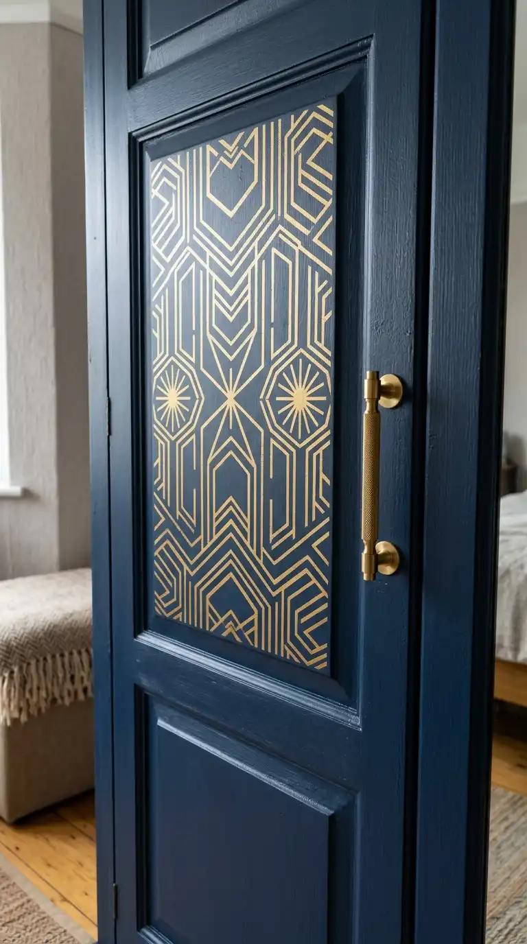Add pattern to painted wardrobe doors using stencils. Choose a geometric, floral, or Moroccan-inspired design, and use a contrasting paint color to create the pattern. Stenciling is an affordable way to add visual interest and customization.
