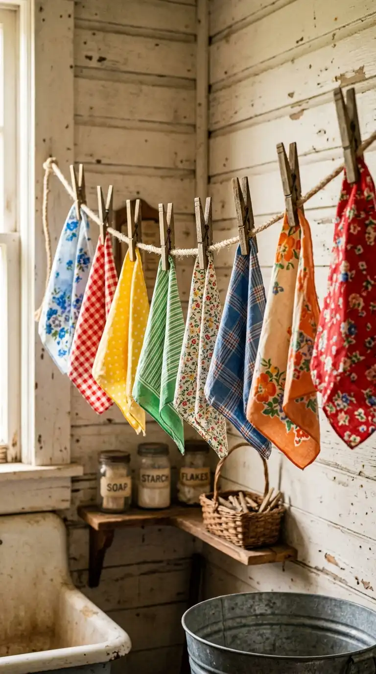 String a cotton clothesline across the room and use wooden clothespins to hang small items like handkerchiefs or doll clothes for a decorative touch. Even if you don’t use it for drying, a clothesline adds nostalgic charm. Use a retractable clothesline to save space when not in use.