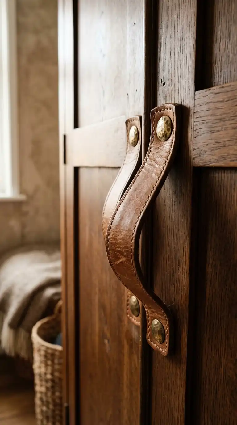 Leather pulls add a natural, organic touch to wardrobe doors. The soft texture contrasts beautifully with smooth surfaces, creating a handcrafted, warm feel. Leather pulls work well in Scandinavian, bohemian, and modern farmhouse interiors. Choose natural, tan, or black leather attached with brass rivets.