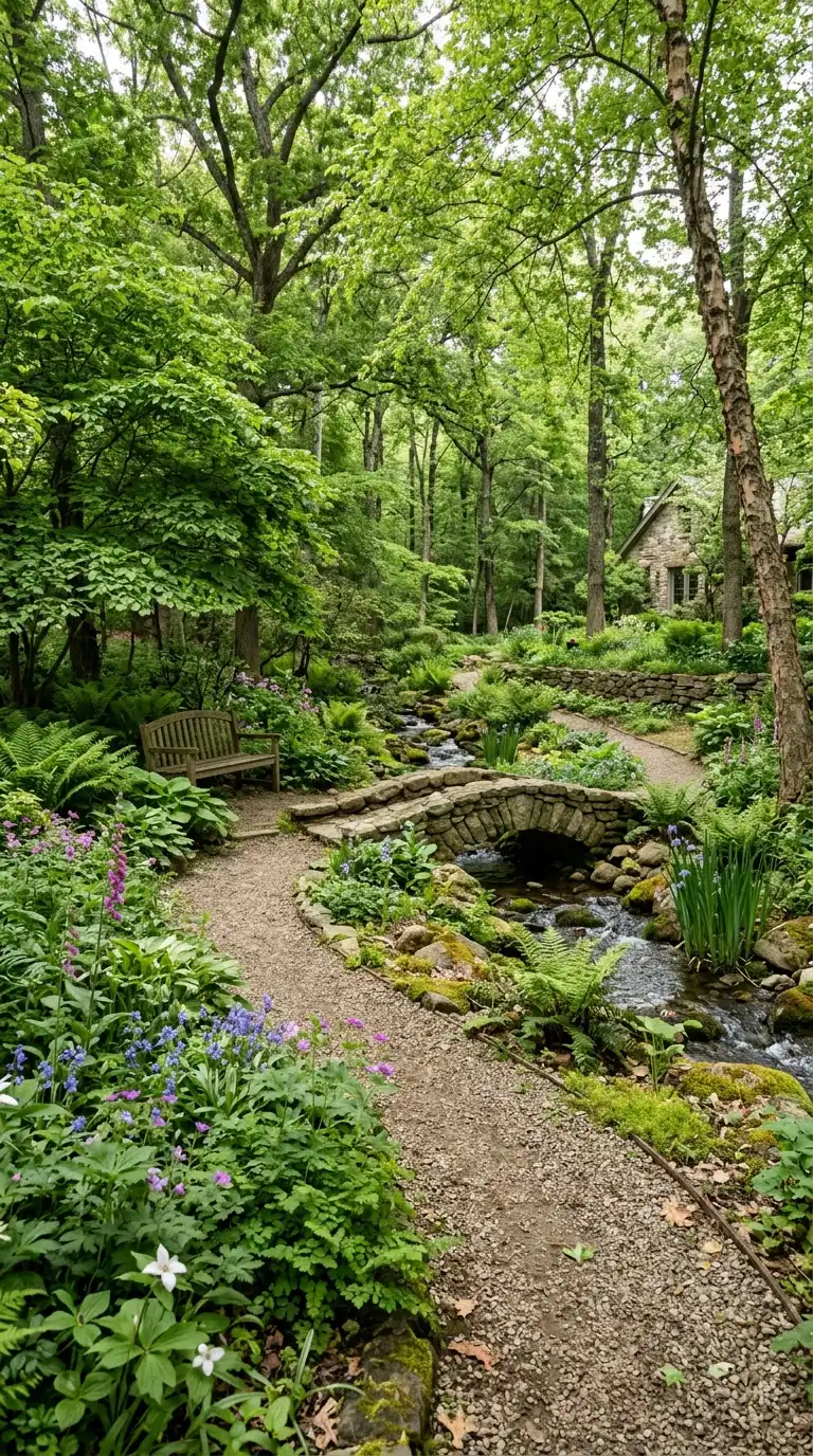 Embrace the beauty of nature with a naturalistic or woodland garden that mimics the curves and randomness of the wild. Use winding pathways, irregularly shaped planting beds, and native plants like ferns, wildflowers, and shade trees. Incorporate natural materials like stone, wood, and gravel. A woodland garden creates a peaceful, serene atmosphere that feels like an escape from the built environment.