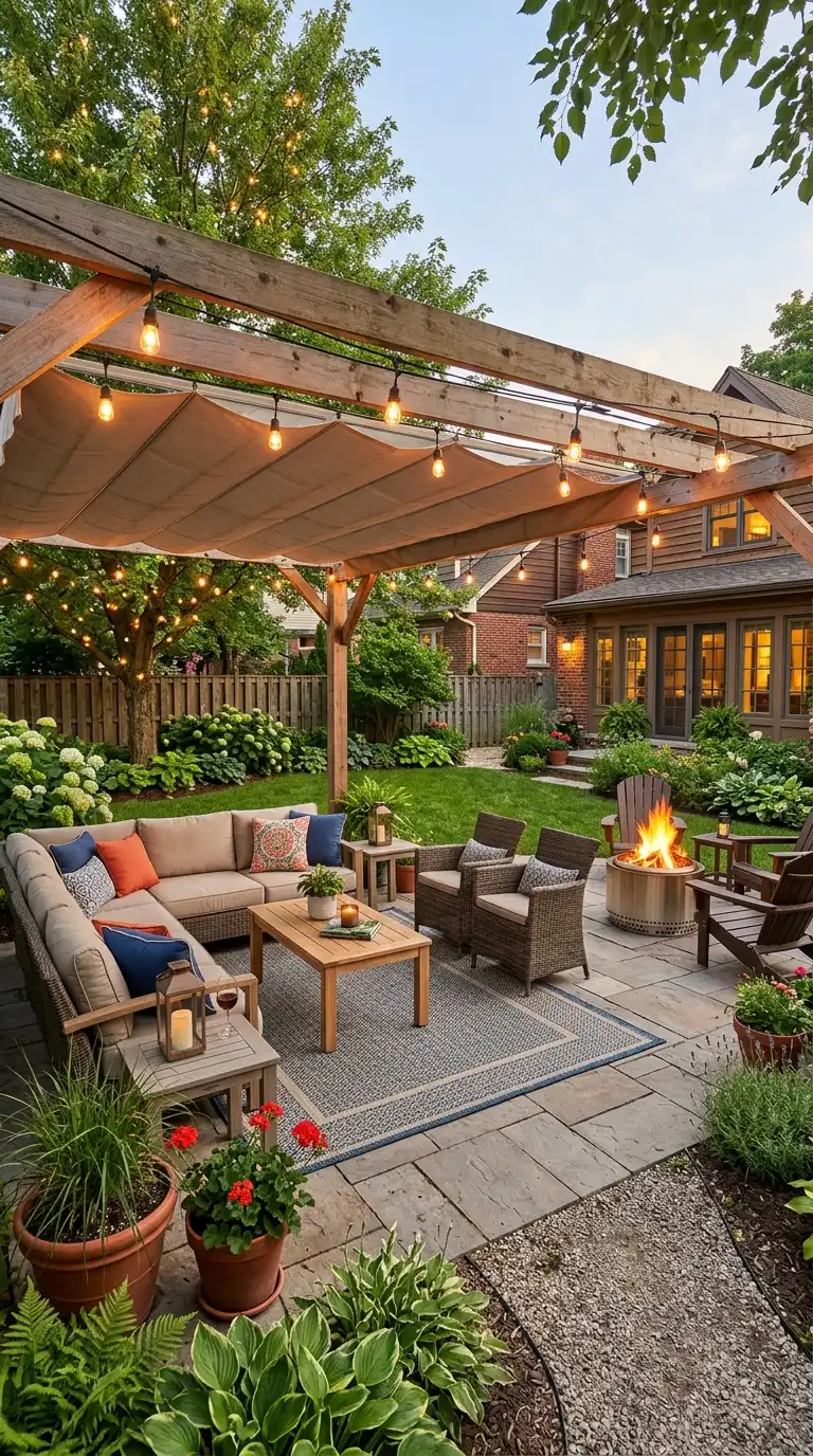 Extend your indoor living space outdoors with a well-appointed outdoor living room. Use comfortable, weather-resistant furniture arranged in a conversational layout. Add an outdoor rug to define the space, and include a pergola or shade structure for shelter. Incorporate a fire pit or fireplace for warmth, and use lighting to create ambiance. An outdoor living room becomes a natural gathering spot for family and friends.