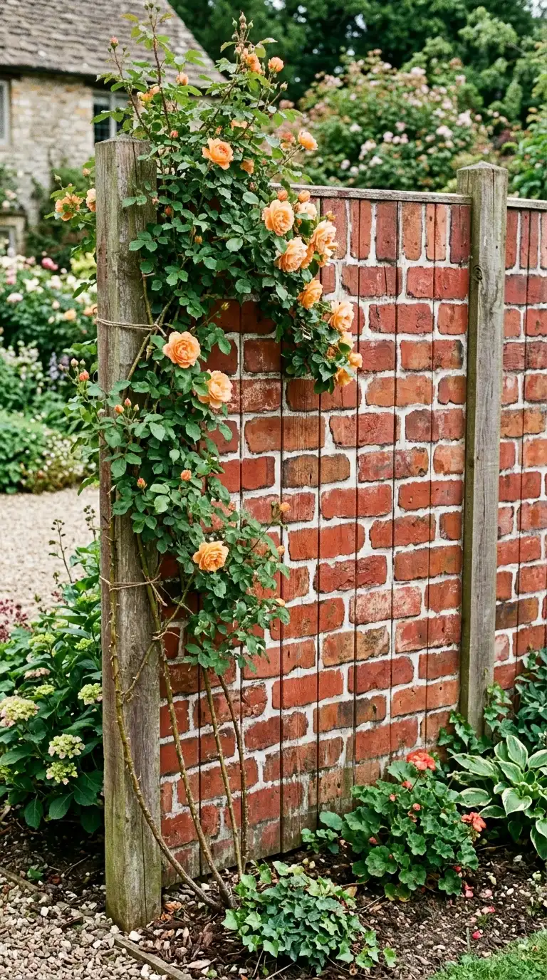 No bricks? Paint them. Use a sponge or stencil to create a realistic brick or stone pattern on a plain fence or shed. Choose warm terra cotta for brick or cool greys for stone. The texture adds weight and permanence to a flimsy surface.