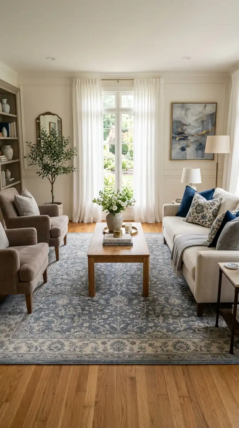 A blue rug is one of the most versatile foundation pieces you can choose for your living room. It grounds the space, defines the seating area, and introduces color in a way that feels intentional yet flexible. Whether you prefer a deep navy Persian rug, a soft sky blue shag, or a bold geometric pattern, a blue rug serves as the anchor around which the rest of your decor can flourish. Blue pairs effortlessly with neutrals, complements warm wood tones, and provides a calming counterpoint to bolder accent colors. Here are fourteen blue rug living room ideas to inspire your next design project.