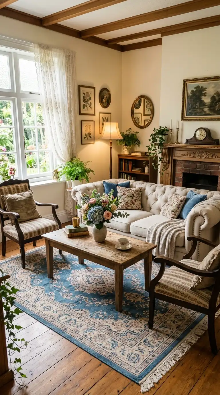 A blue floral rug brings vintage charm and romantic appeal to a living room. The floral pattern adds softness and organic beauty, while the blue base keeps the look grounded. Pair it with antique or vintage-inspired furniture, and incorporate muted accent colors like blush, cream, or sage green to complement the floral motifs.