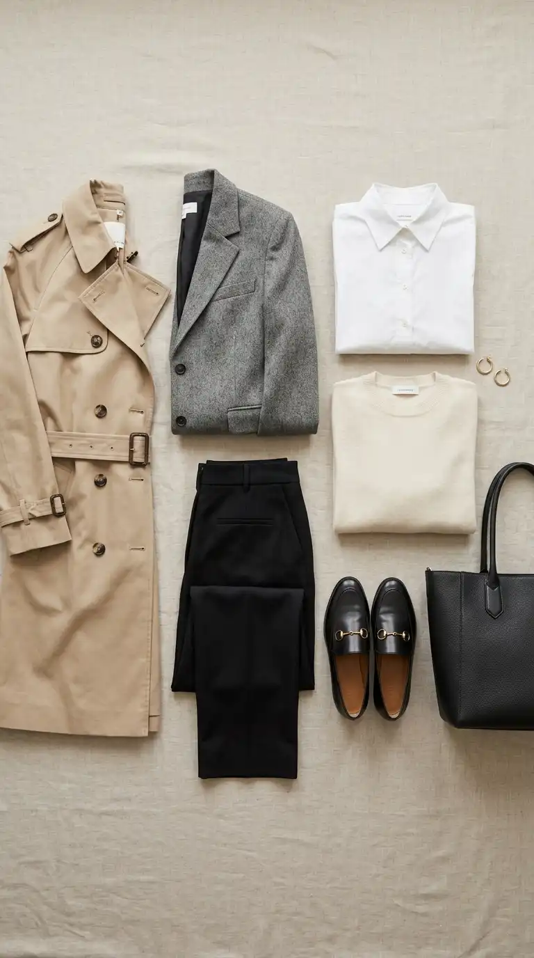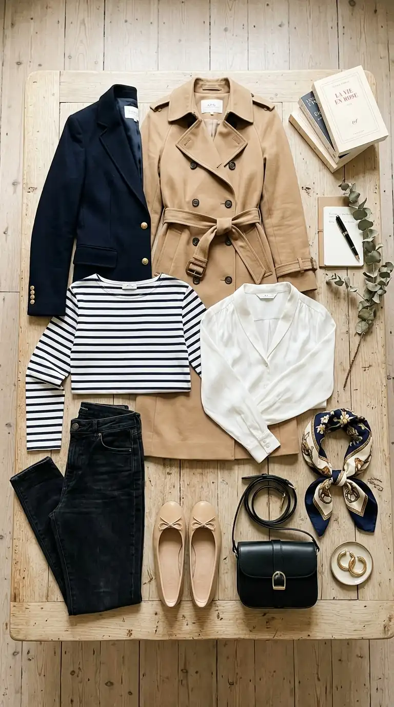 Inspired by effortless French style, the Parisian chic capsule combines classic silhouettes with understated elegance. The palette centers on navy, white, black, and camel. Essential pieces include a navy Breton striped top, a white blouse with subtle detailing, black skinny jeans, a camel trench coat, and a tailored blazer. Accessories are minimal but impactful—a silk scarf, ballet flats, a crossbody bag, and simple gold jewelry. This capsule emphasizes quality over quantity, with each piece earning its place through versatility and timeless appeal. The result is a wardrobe that looks polished without appearing effortful.