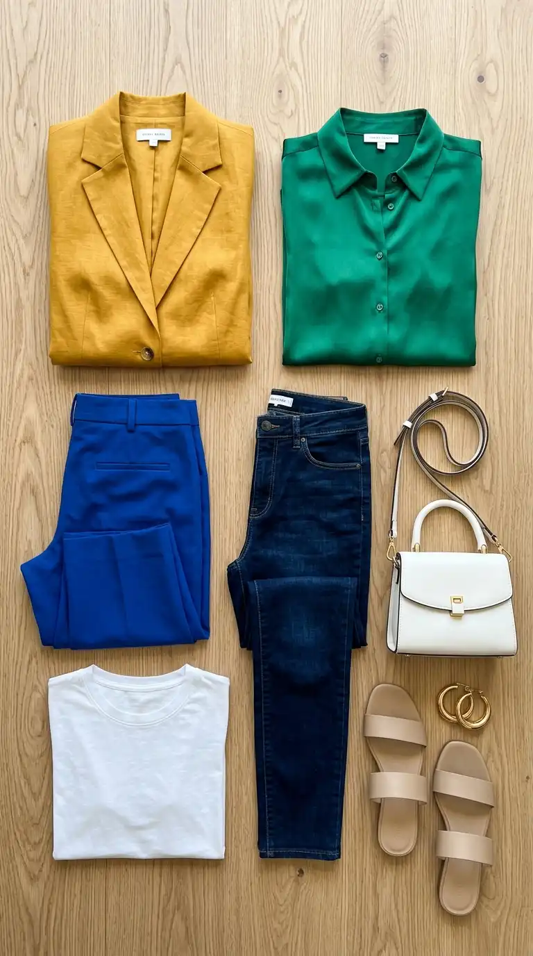 For those who love color, a bold capsule built around a vibrant palette can be both joyful and versatile. Choose two to three hero colors—like mustard yellow, emerald green, and cobalt blue—and ground them with neutrals like white, navy, or beige. Key pieces include a colorful blazer, a silk blouse in a jewel tone, tailored trousers in a bold hue, and a neutral foundation of white tees and denim. This capsule allows you to express personality while maintaining cohesion. Accessories can be kept neutral to let the colors take center stage.
