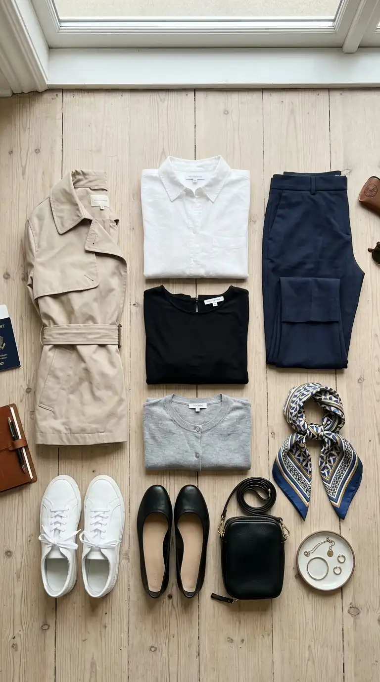Designed for versatility and portability, the travel capsule includes pieces that mix, match, and pack easily. The palette is neutral—black, white, navy, and beige—allowing for maximum combinations. Key pieces include a wrinkle-resistant blouse, a versatile dress, comfortable trousers, a lightweight cardigan, a packable trench coat, and a silk scarf for versatility. Footwear is limited to one pair of comfortable walking shoes and one pair of dressier flats or sandals. Accessories are minimal but impactful—a crossbody bag, a scarf that doubles as a wrap, and simple jewelry.