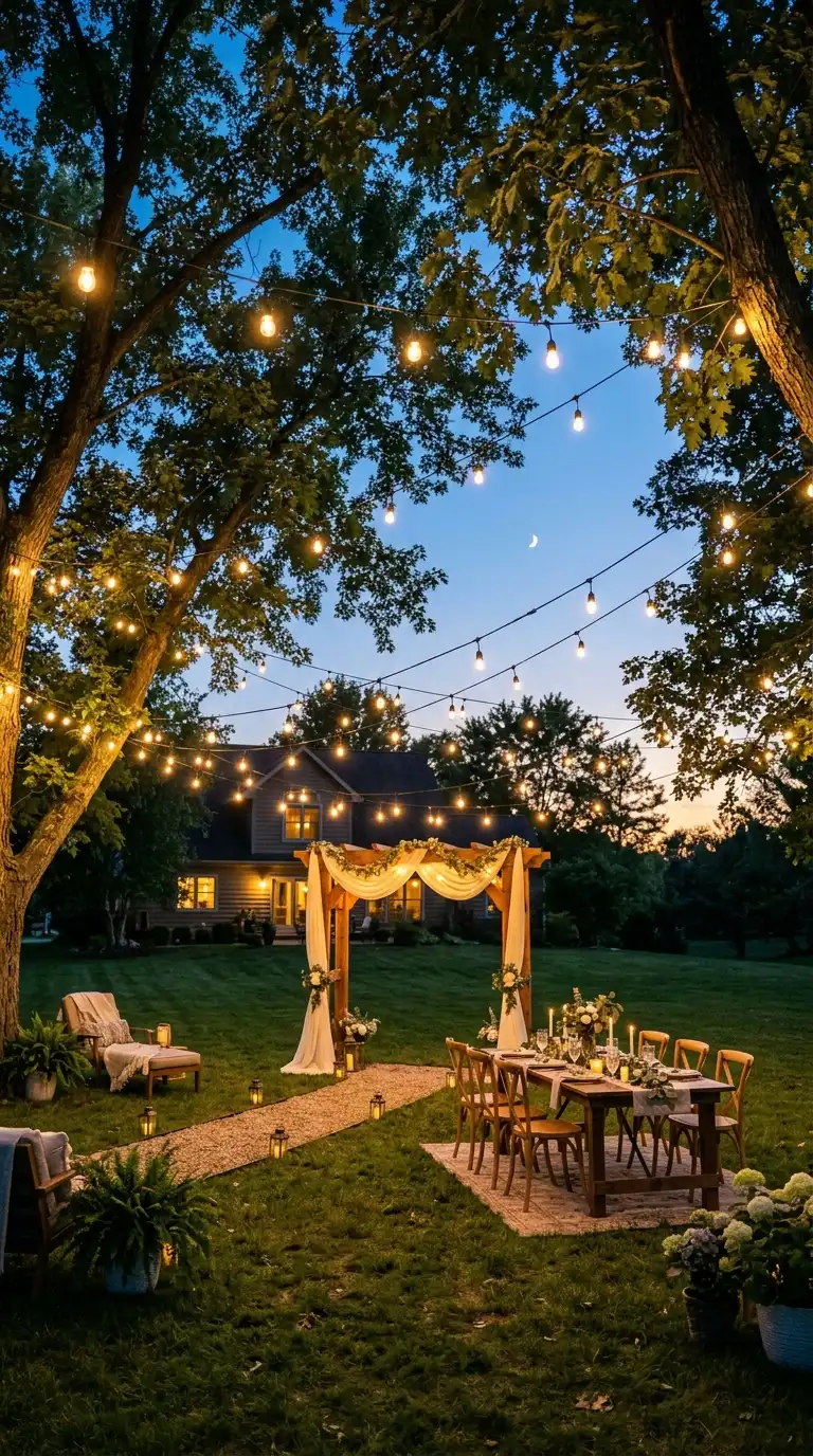 There is nothing quite like string lights (fairy lights, Edison bulbs, or bistro lights) to instantly create a magical, romantic atmosphere. This is perhaps the most cost-effective way to make a big impact. Don’t just drape them along a fence. Instead, create a overhead canopy, wrap them around tree trunks, weave them into bushes, or hang them in cascading curtains. These soft, glowing lights define spaces and make everything feel enchanting.