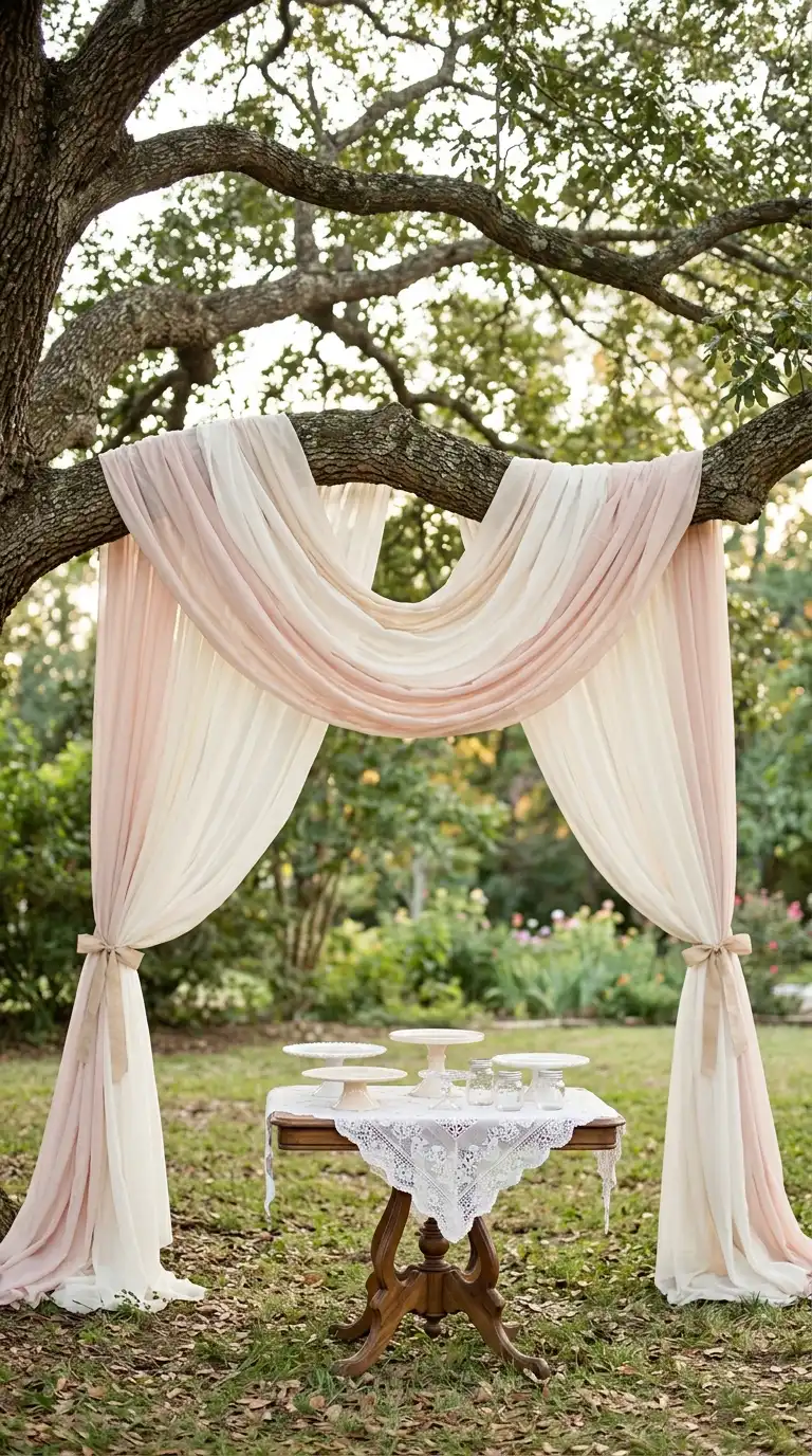 Whether you need a backdrop for the photo booth, the cake table, or even the ceremony, large pieces of fabric are your answer. Look for sales on textiles like linen, lace, or even colorful patterned fabrics that match your theme. You can drape them over poles, hang them from a sturdy branch, or use a staple gun to attach them to a simple wooden frame. For extra texture, try “cheesecloth dyeing” (using food coloring or natural dyes) to get a perfect, soft-colored hue.