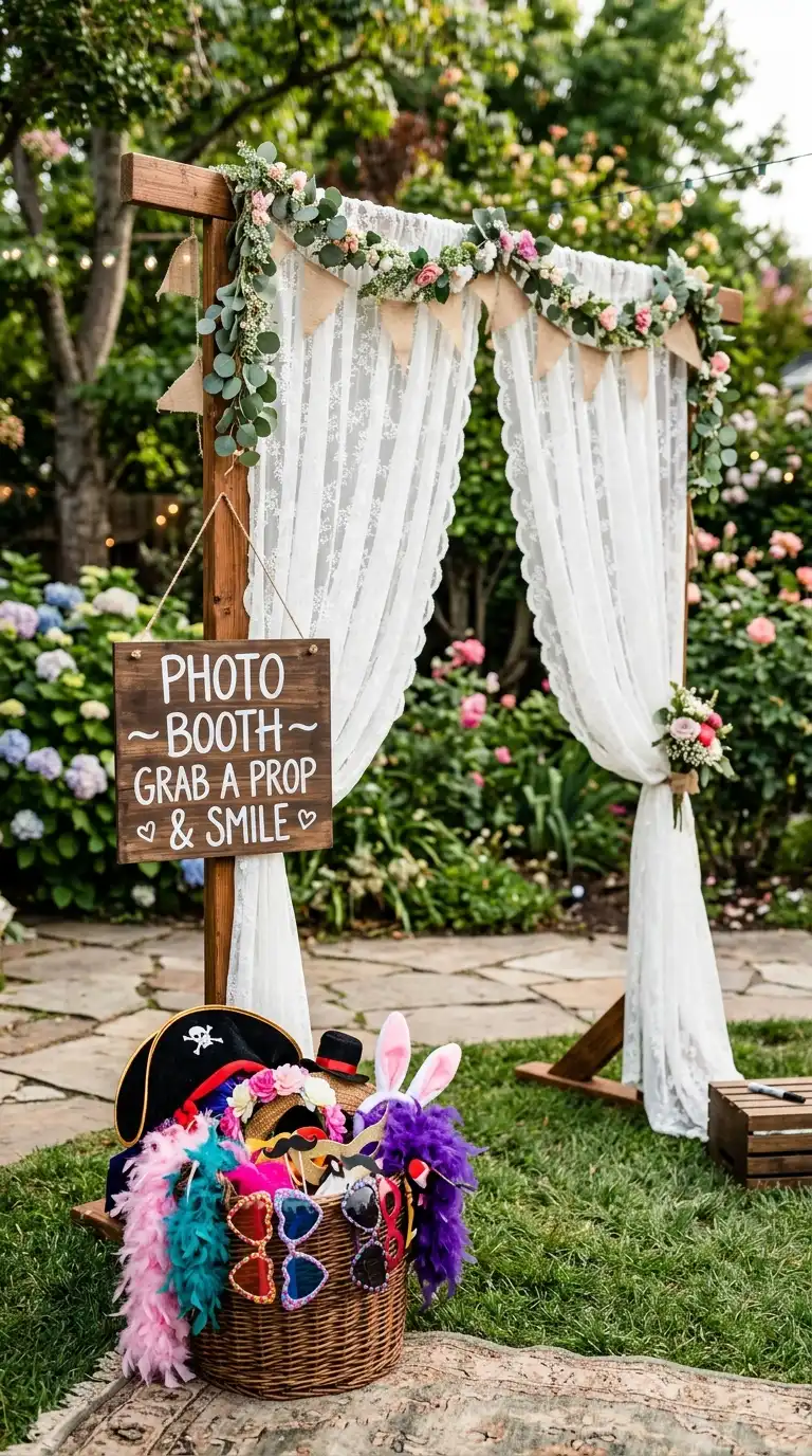 Photo booths are a crowd favorite, but professional ones are expensive. Creating your own is simple and incredibly fun. All you need is a backdrop (see idea #7!), some props (easily found at dollar stores or on clearance), and a way for guests to take photos. You can use an old tablet loaded with a photo booth app, an instant camera with plenty of film, or simply create a beautiful setup and have a sign asking guests to “use our hashtag” on their smartphones. This is guaranteed to capture candid, joyous moments.