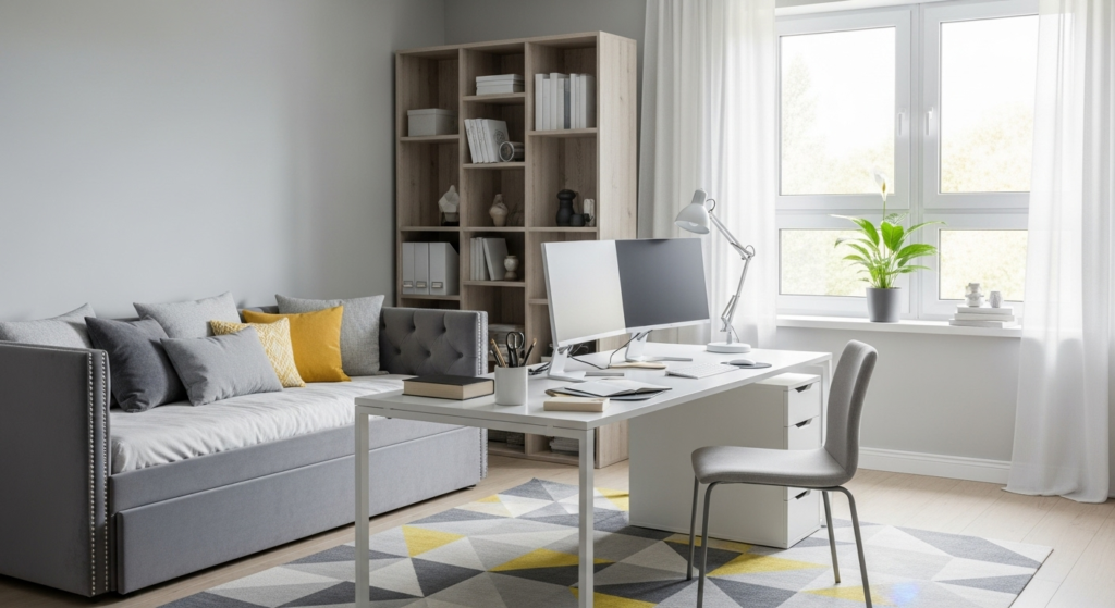 Be realistic about how often you’ll use each function. If you work from home daily but host guests quarterly, optimize for office use with smart guest accommodation. If you rarely work from home but frequently host visitors, prioritize guest comfort with a minimal office setup.