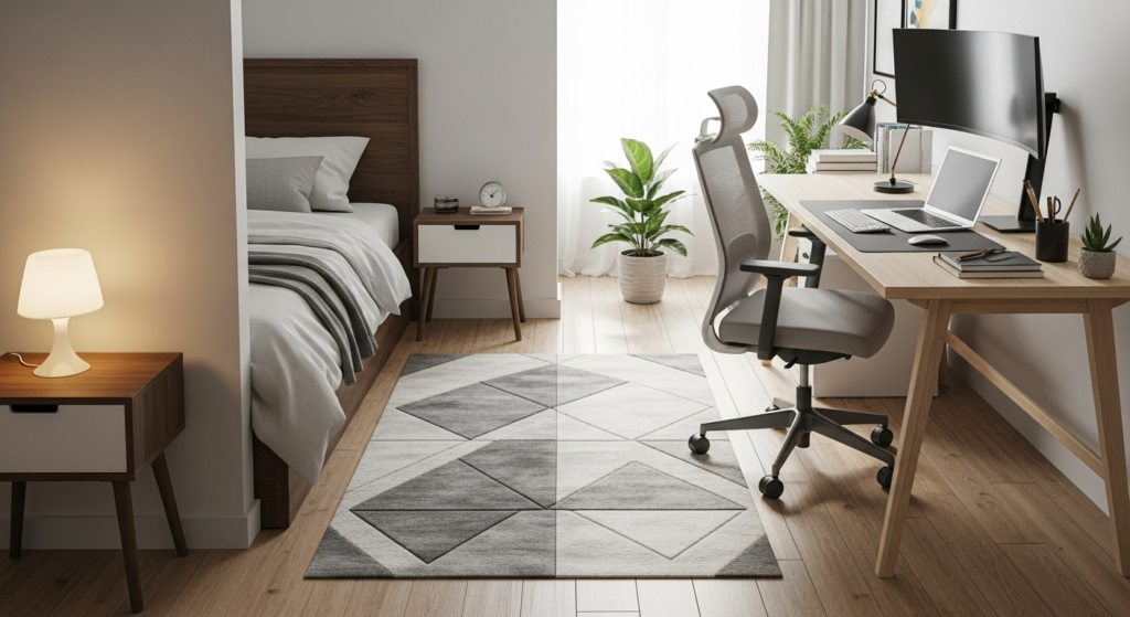 - Area rug defining office zone