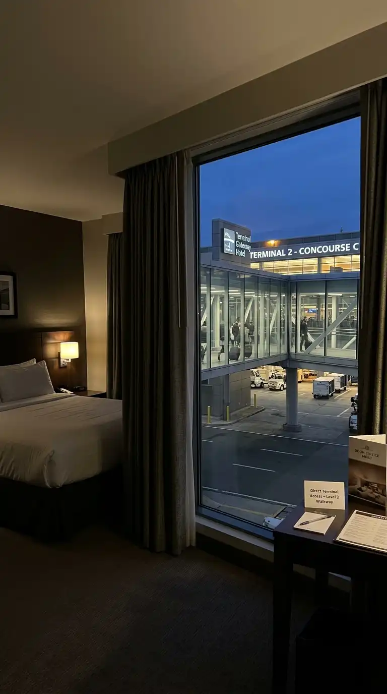 - The hotel must be connected to the airport terminal.