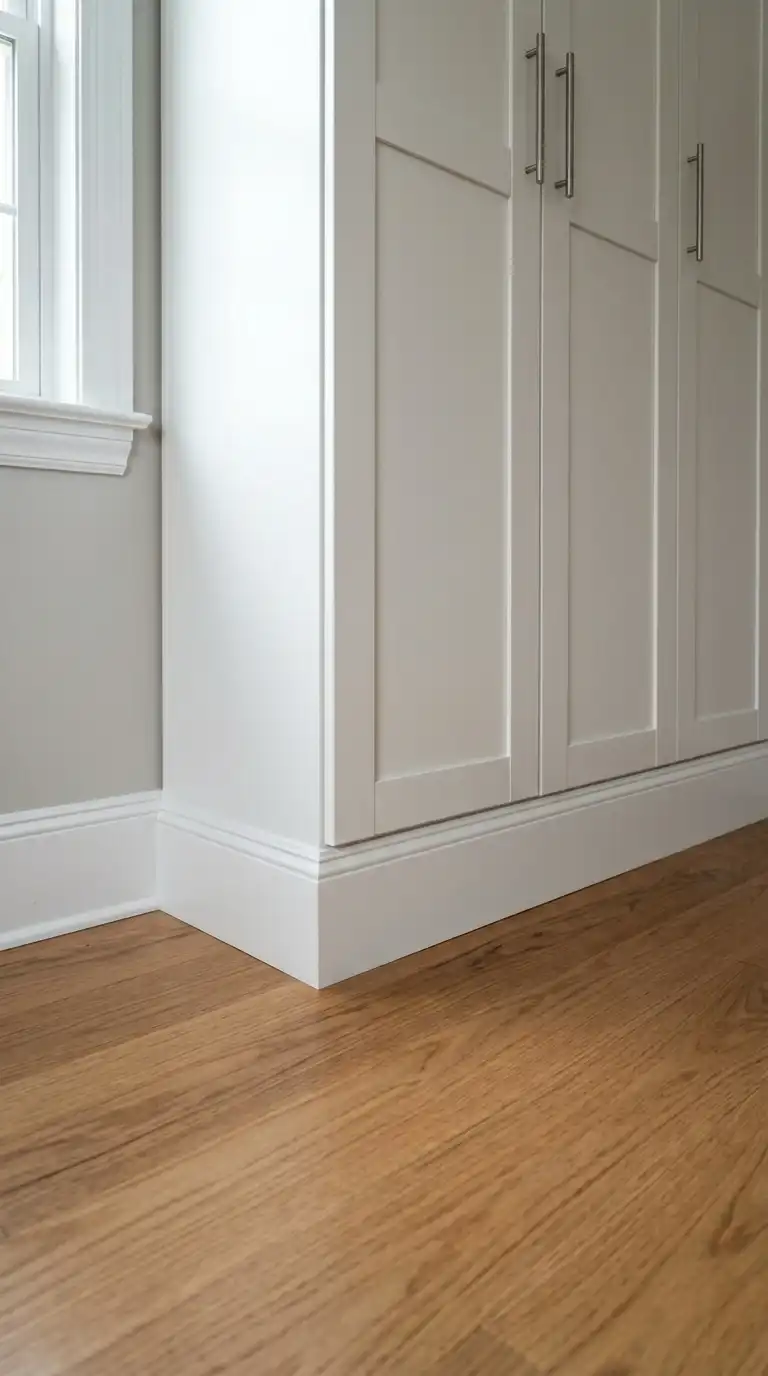 Adding baseboard trim and toe kicks transforms the foundation of a PAX wardrobe, making it look like permanent millwork. Attach standard baseboards along the bottom front edge of the PAX frame using wood glue and brad nails, then install a matching toe kick beneath. Ensure the toe kick is level and aligned across multiple units for a polished, professional finish.