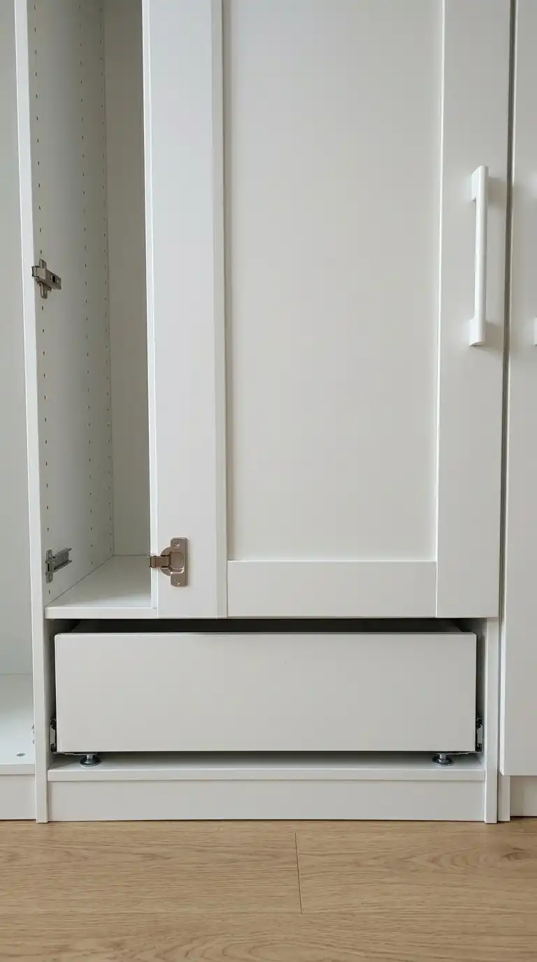 Yes. If the bottom hinges block a full-size drawer, swap them for smaller hinges (like Ravinte overlay hinges) to create clearance for an additional KOMPLEMENT drawer at the bottom. This allows you to maximize every inch of storage space.