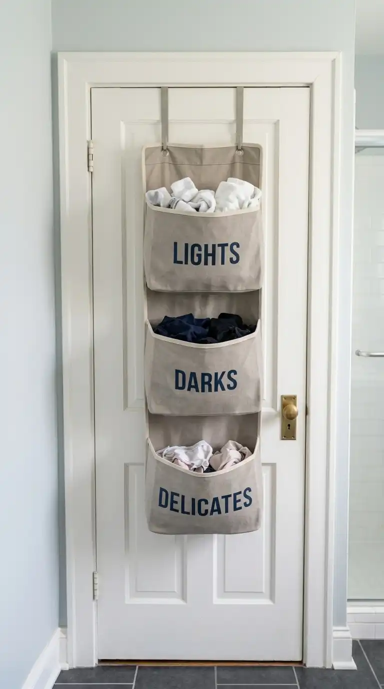 Use the back of a door for laundry basket storage. Hang an over-the-door hamper with multiple pockets or a single large bag. This is perfect for very small spaces like a closet laundry or a bathroom. The hamper is hidden when the door is closed.