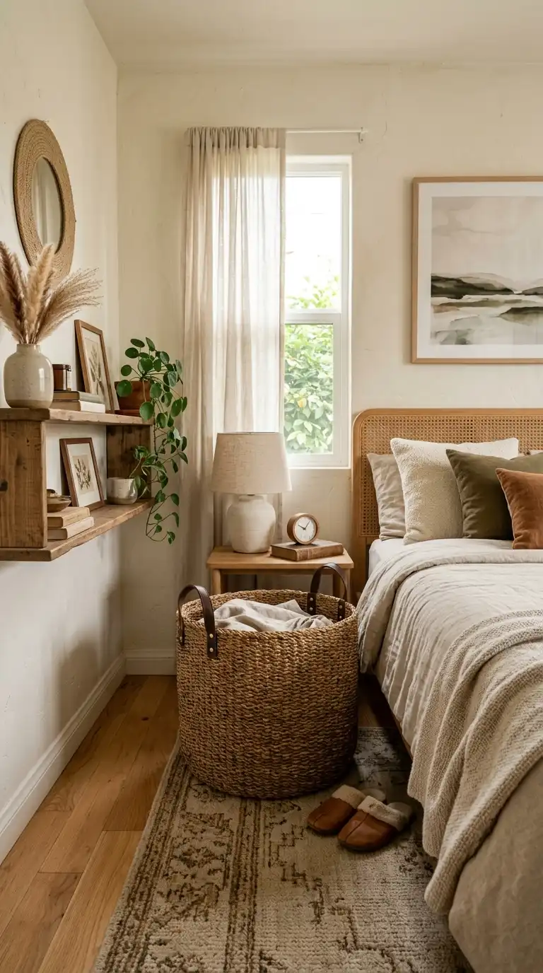 If your laundry basket must be out in the open, choose a decorative one that complements your decor. Woven seagrass, rattan, or canvas baskets with leather handles can look like intentional decor rather than an eyesore. Keep the basket in a corner of the bedroom or bathroom.