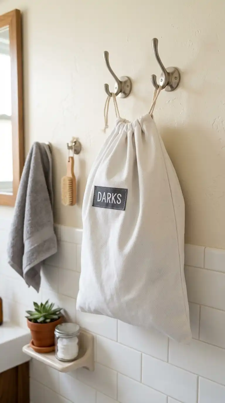 Save floor space by mounting a fabric laundry bag directly on the wall. Use heavy-duty hooks or a wall-mounted rack. Choose a bag with a drawstring closure and a washable liner. This is ideal for very small bathrooms, closets, or laundry rooms where floor space is at a premium.