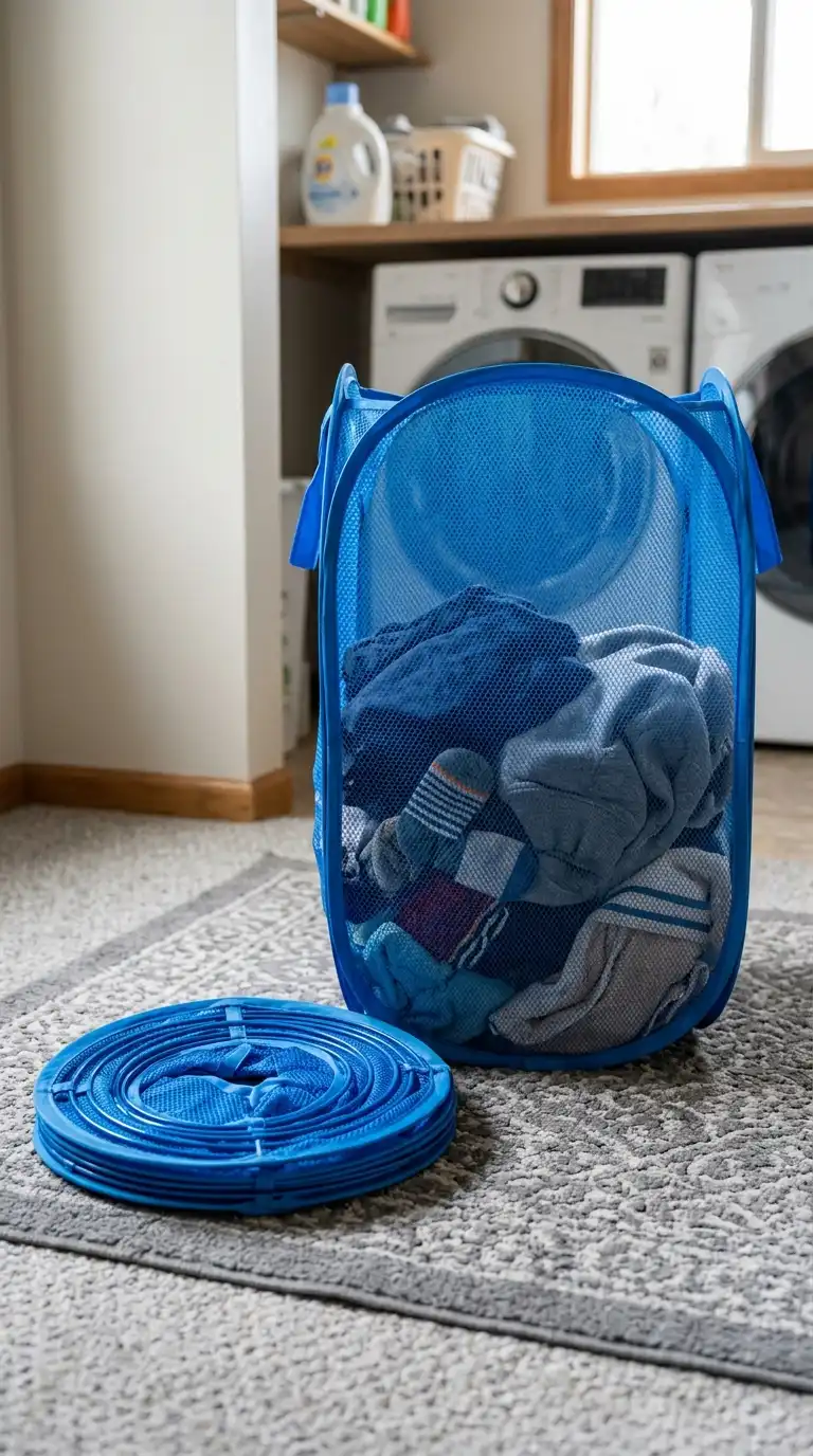 A collapsible hamper is perfect for travel, dorm rooms, or small apartments. It folds flat when not in use and pops open when needed. Use lightweight fabric with mesh panels for ventilation. Keep one in your closet for daily use and collapse it on laundry day.